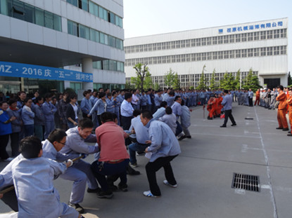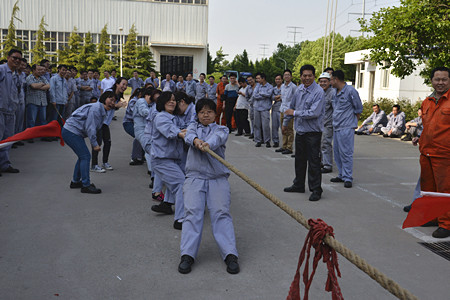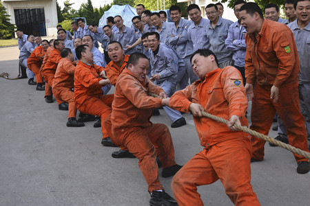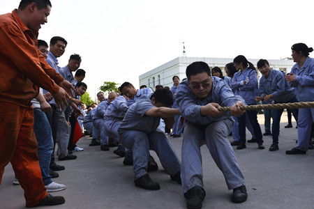 The company's trade union holds tug-of-war contest to celebrate May Day